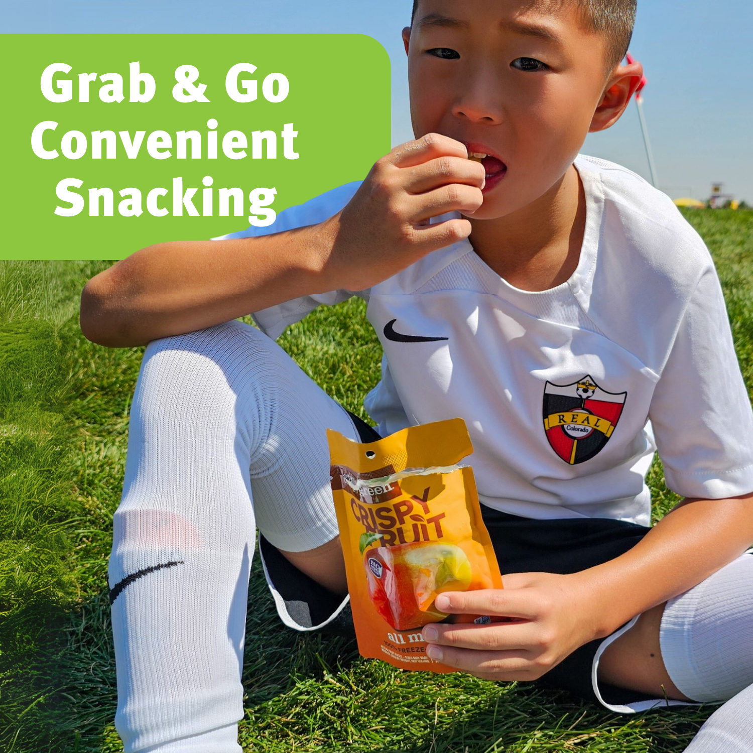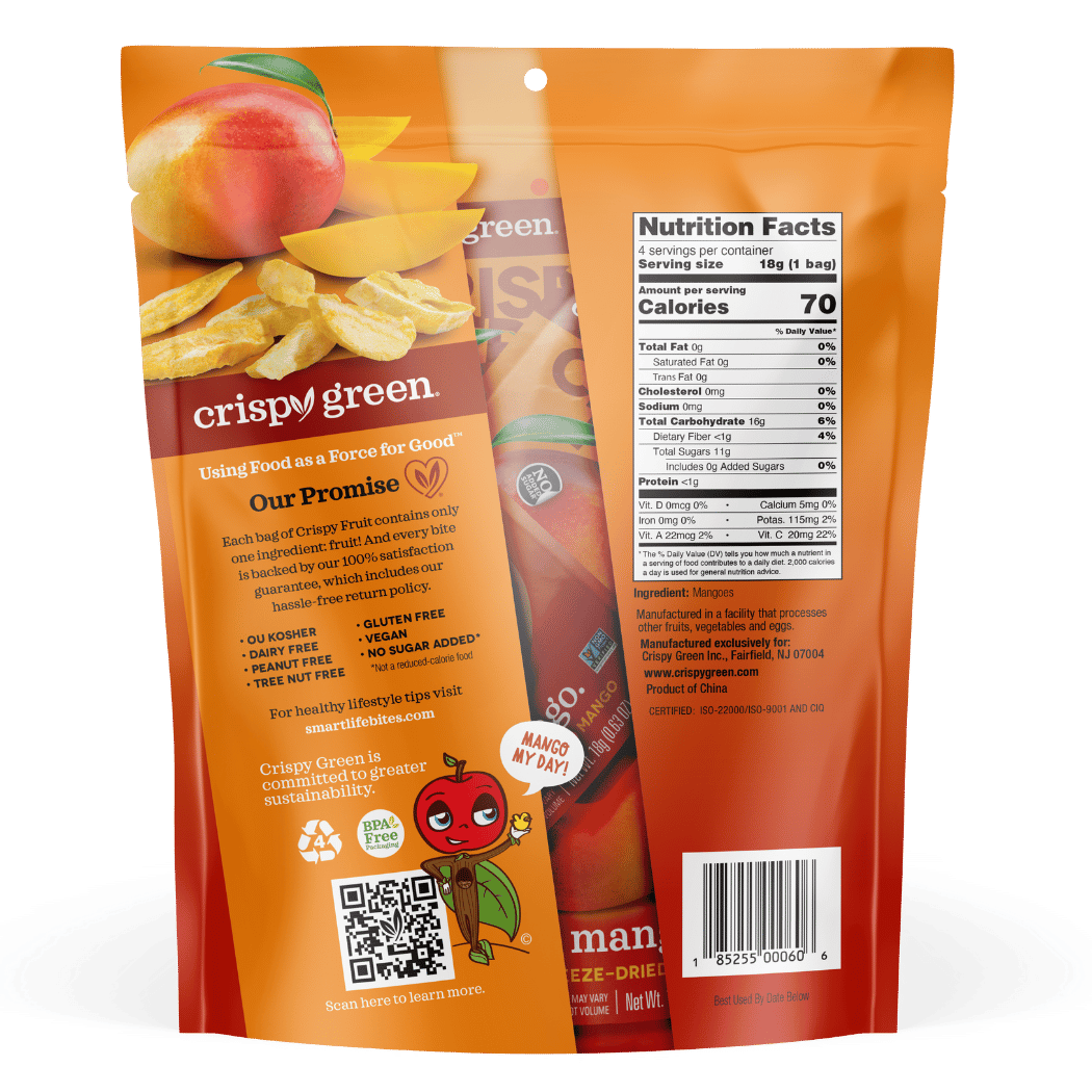 Crispy Fruit freeze-dried mango delivers the Feel Good Crunch busy families love. These naturally sweet, crispy fruit snacks make it easy to add more real fruit to your day—in a fun, convenient way. Perfect for school lunches, sports practice, or road trips, our multi-pack includes four individually wrapped snack-size bags that are ideal for sharing, saving, or enjoying anytime you need a better-for-you pick-me-up.